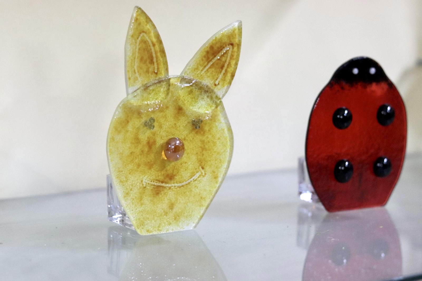 Γυάλινα πασχαλινά ρεσώ λαγουδάκι και πασχαλίτσα.