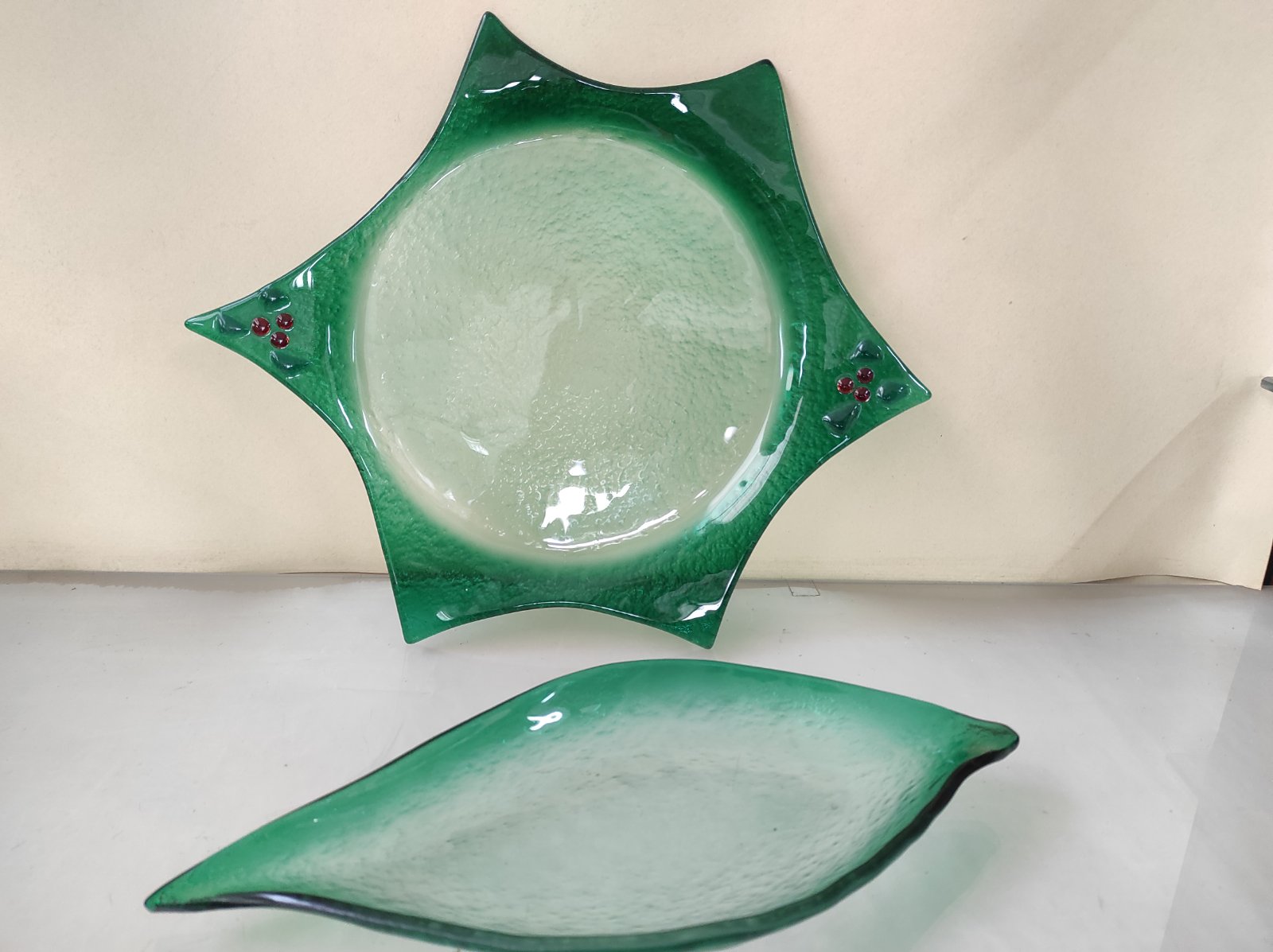 Χριστουγεννιάτικα πράσινα πιάτα σε σχήμα γκι και φύλλο
