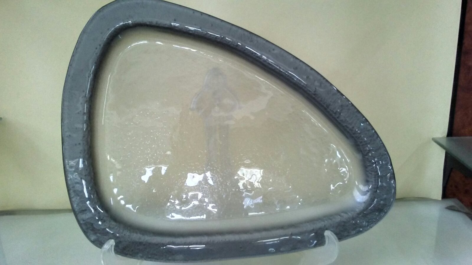 Γυάλινη τριγωνική πιατέλα σε γκρι χρώμα.