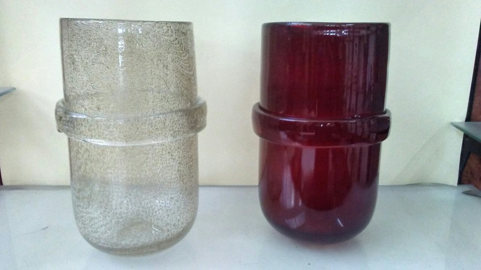 Γυάλινα διακοσμητικά βάζα σε άσπρο και κόκκινο χρώμα.