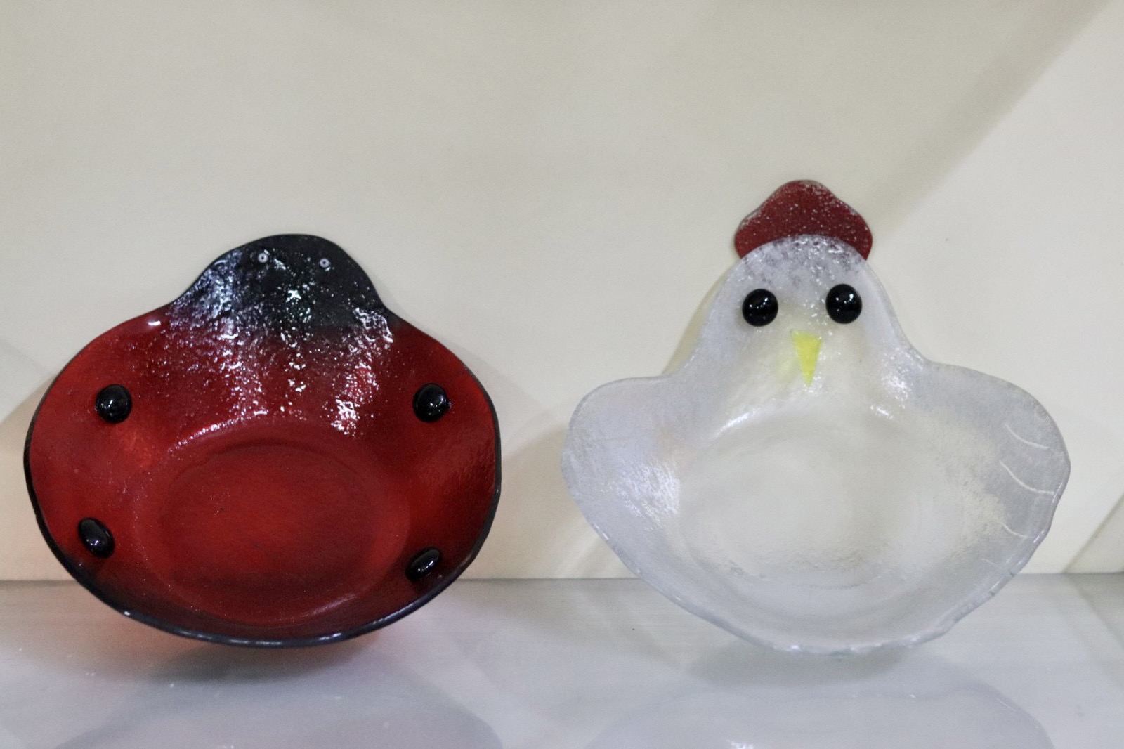 Γυάλινα πασχαλινά δοχεία πασχαλίτσα και κοτοπουλάκι.