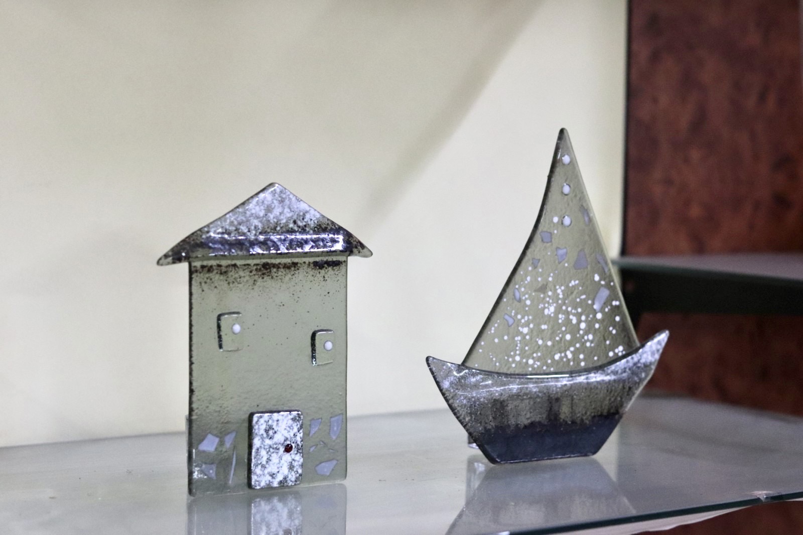 Γυάλινα ρεσώ σπιτάκι και καραβάκι.