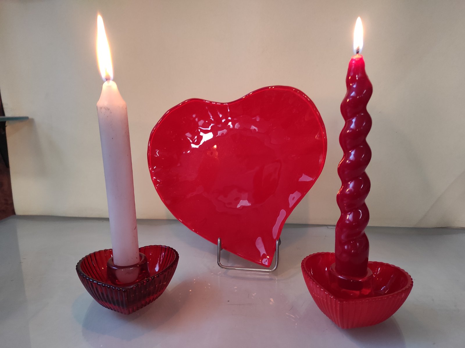 Γυάλινα κόκκινα κηροπήγια σε σχήμα καρδιάς
