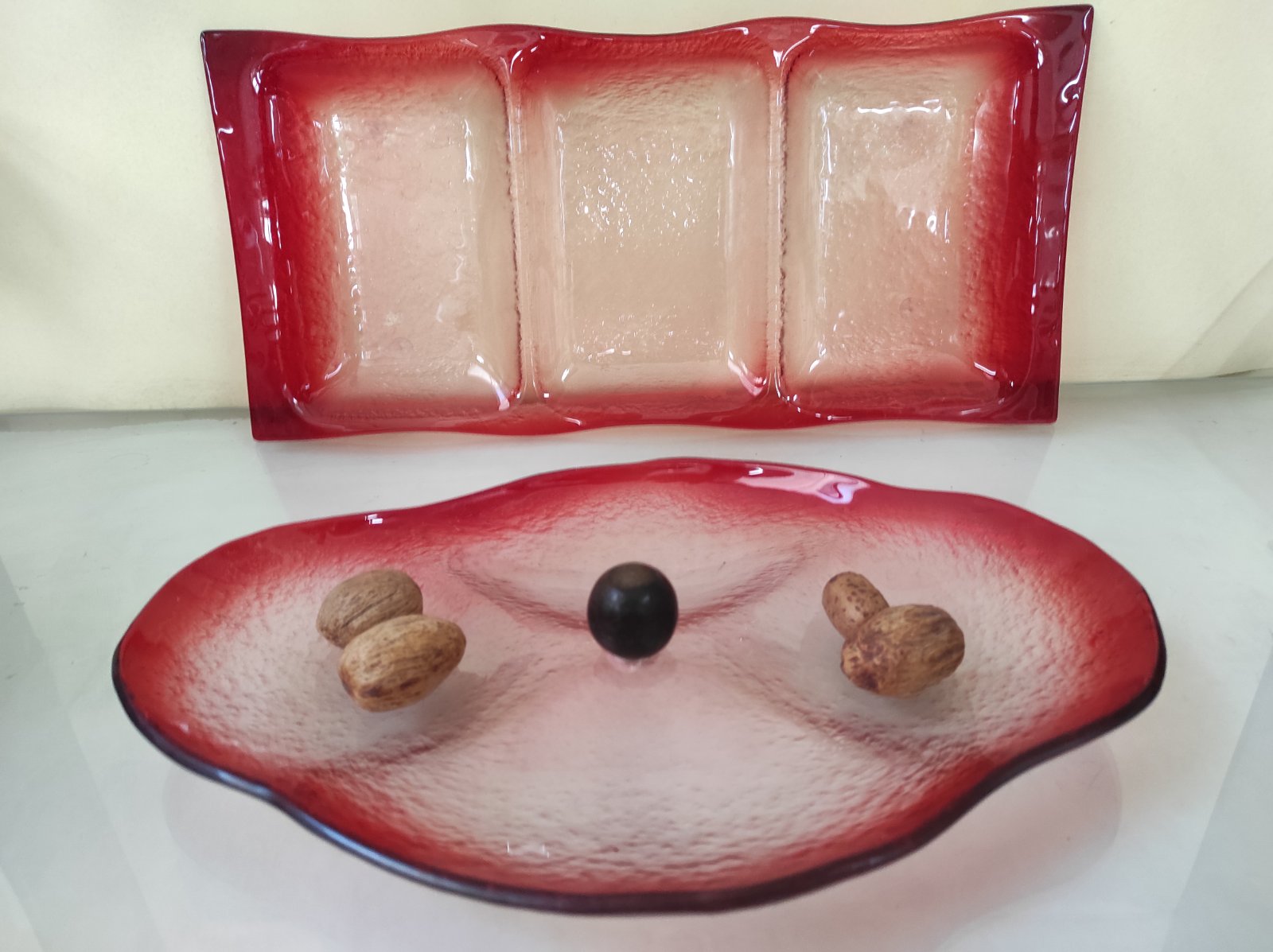 Γυάλινη κόκκινη ξηροκαρπιέρα ορθογώνια και οβάλ.