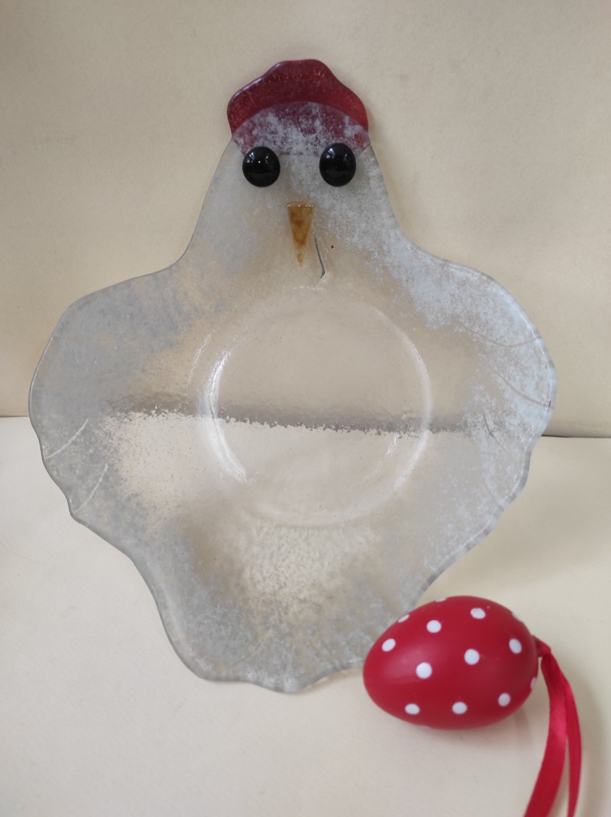 Γυάλινη πασχαλινή πιατέλα κοτούλα