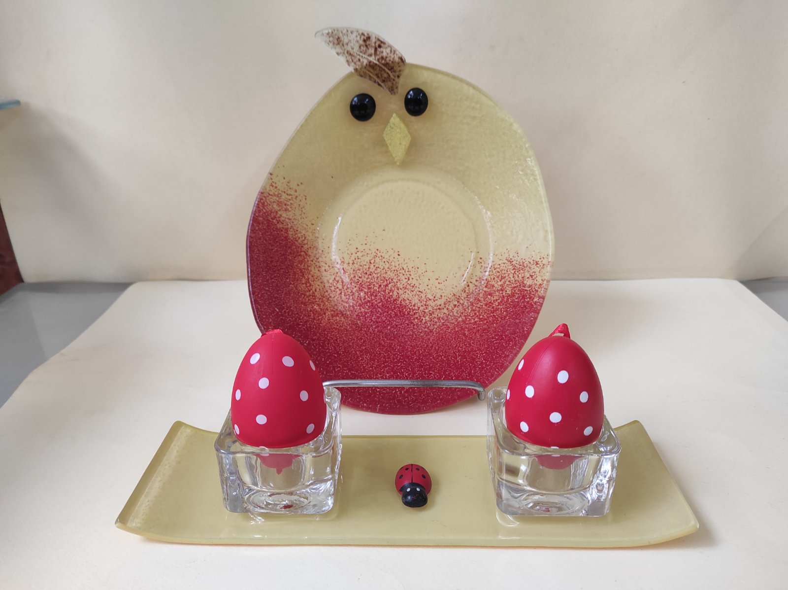 Γυάλινη πασχαλινή πιατέλα κοτοπουλάκι