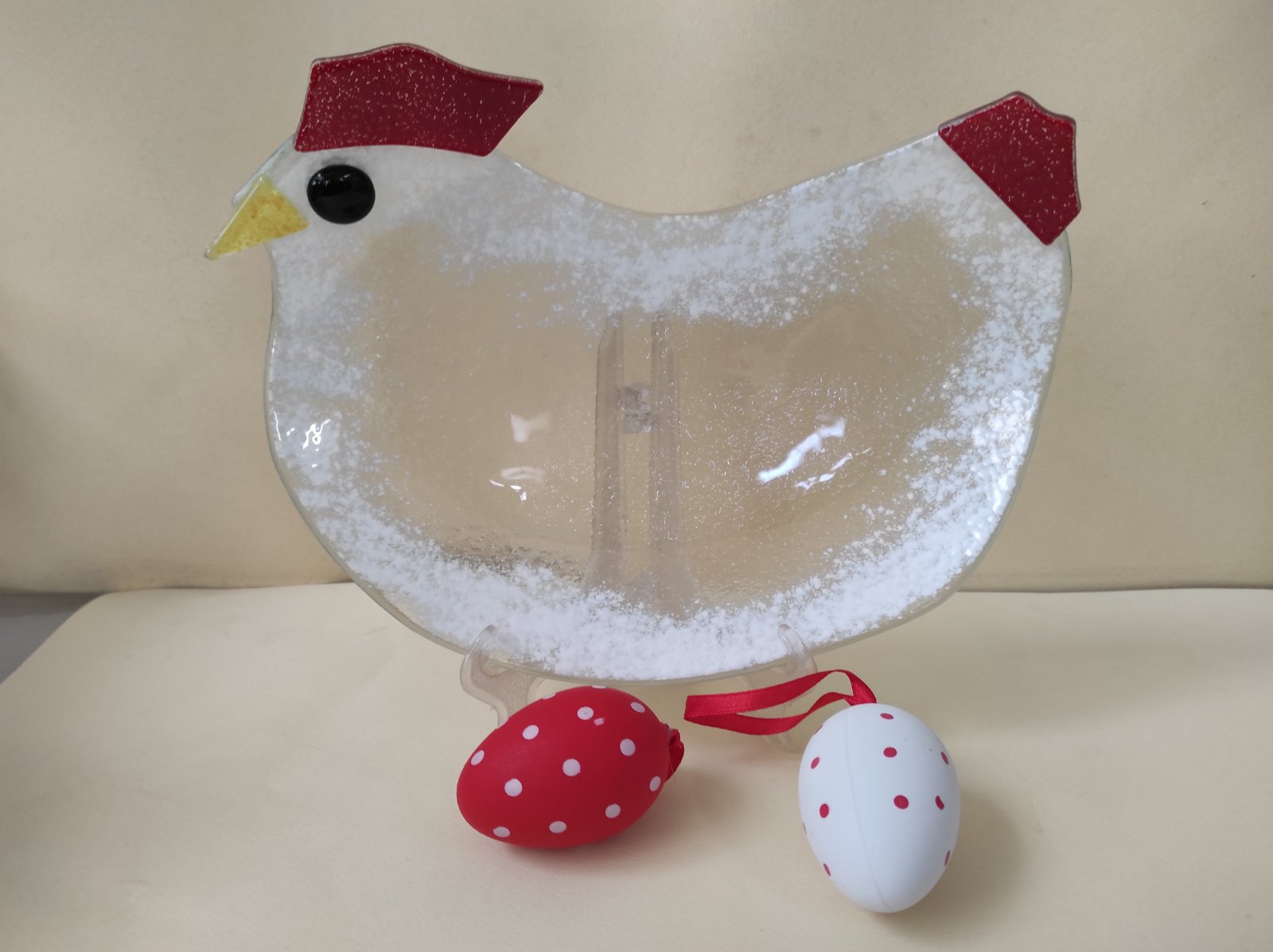 Γυάλινη πασχαλινή πιατέλα κοτούλα