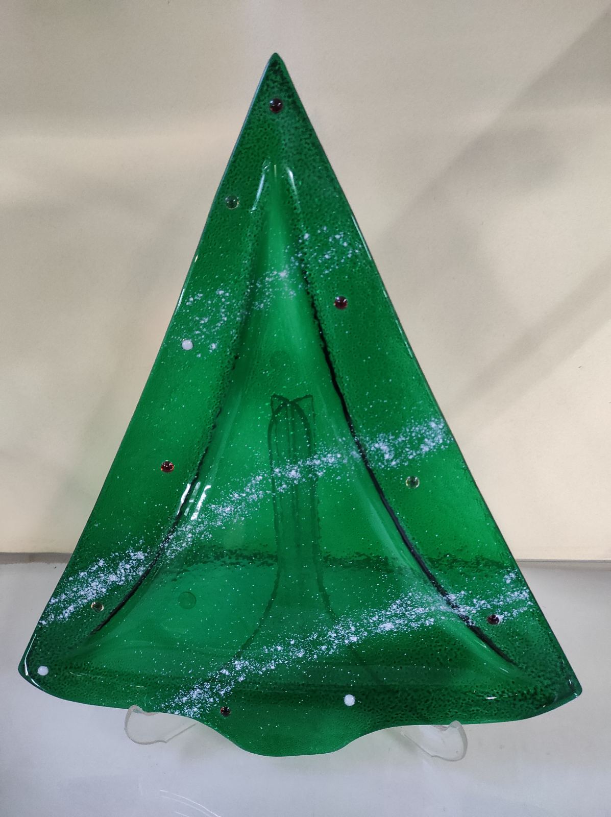 Γυάλινη χριστουγεννιάτικη πιατέλα σε σχήμα χριστουγεννιάτικου δέντρου.