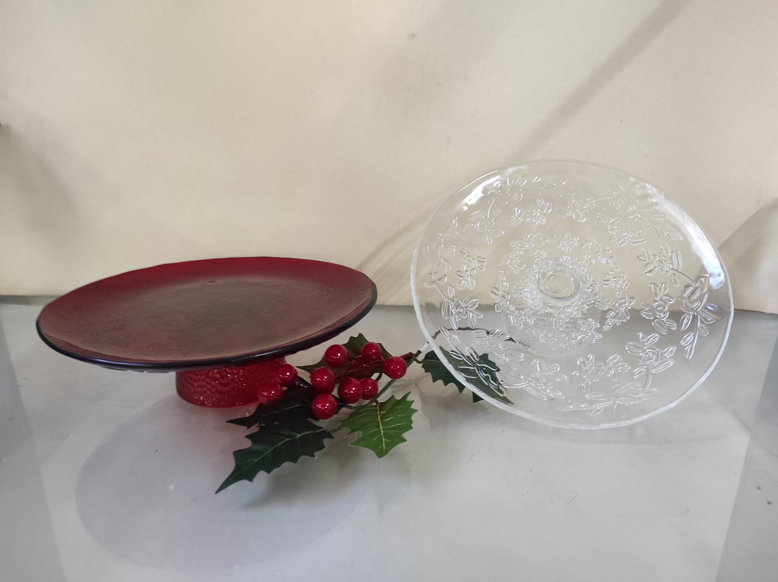 Διάφανη πιατέλα με ανάγλυφα χριστουγεννιάτικα σχέδια
