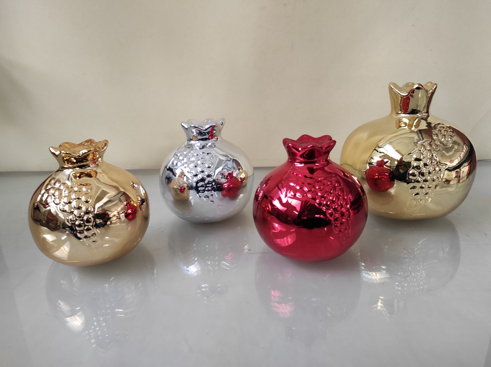 Χριστουγεννιάτικα ρόδια δύο μεγεθών σε κόκκινο, χρυσό και ασημί χρώμα